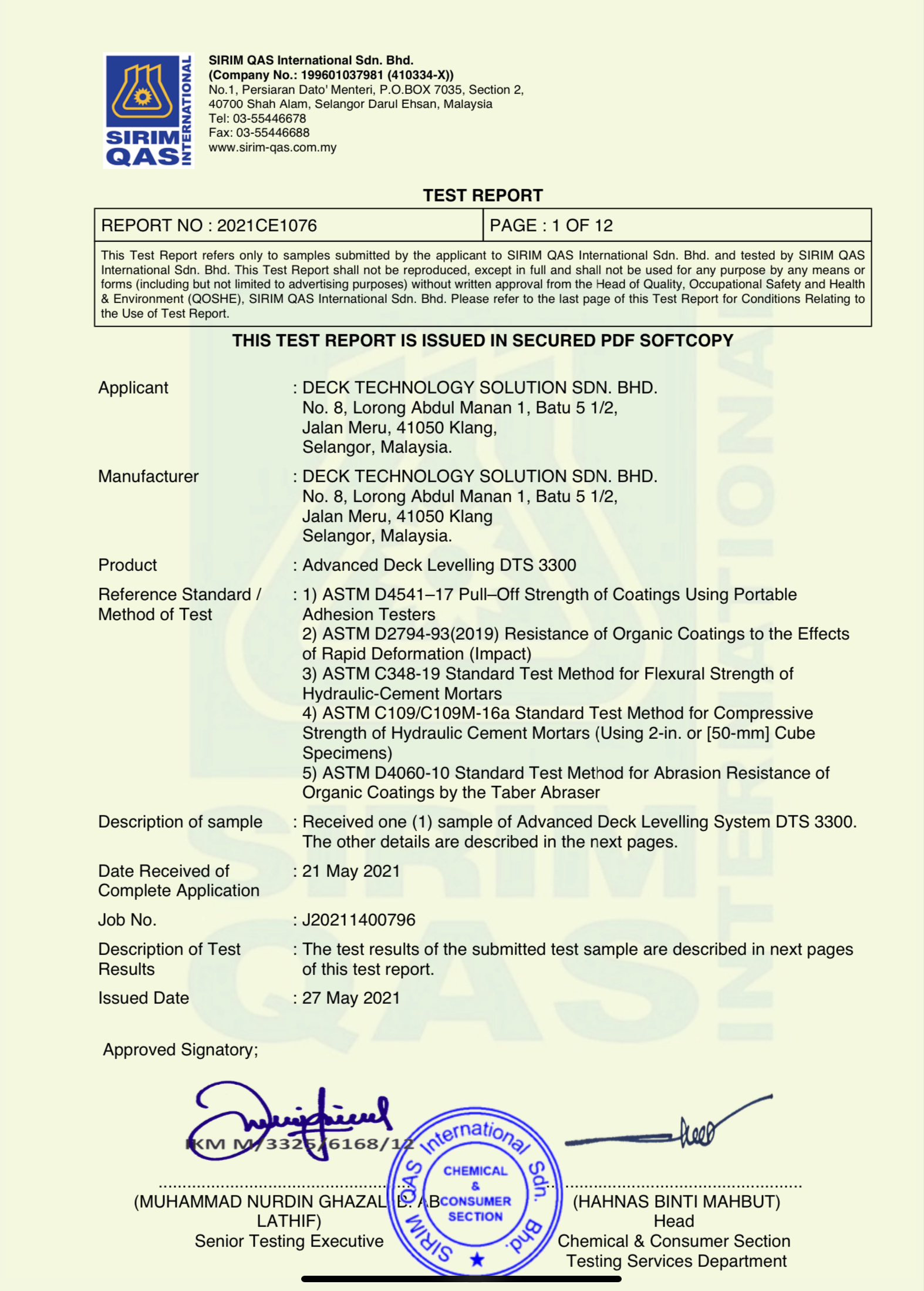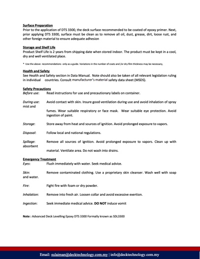 - Deck Technology Solution Sdn Bhd has developed a high quality self-levelling epoxy coating